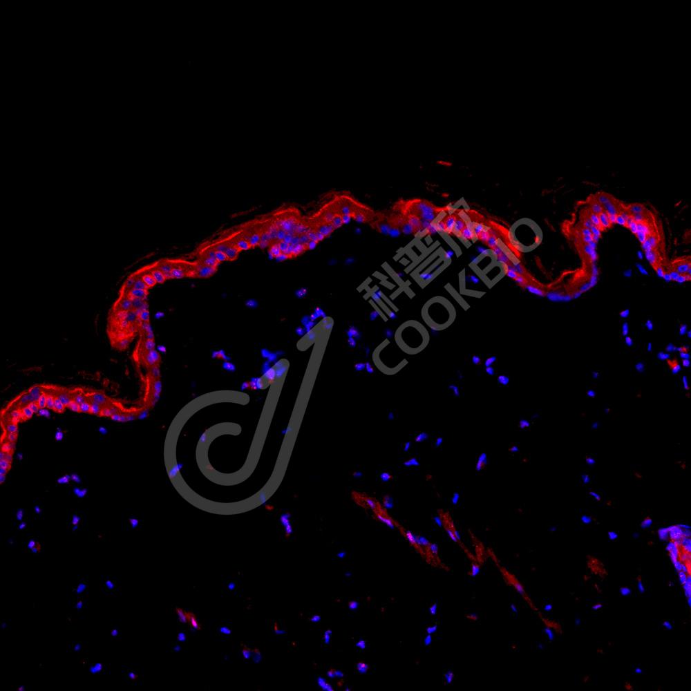 IF检测Cytokeratin 6蛋白(货号 K135469)(红色).