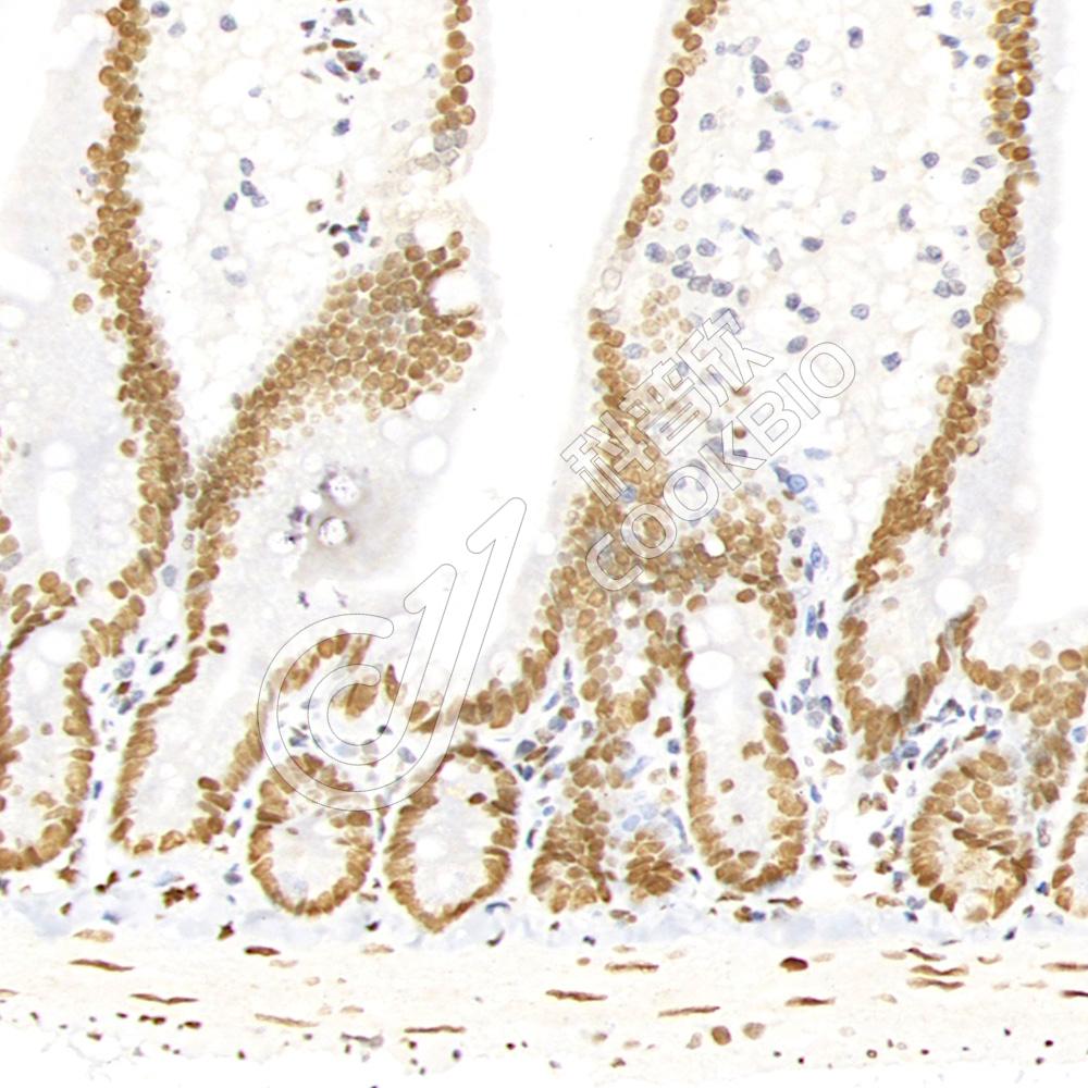 样品: 小鼠十二指肠, 4%多聚甲醛 (货号KSG1101) 固定12-24小时.