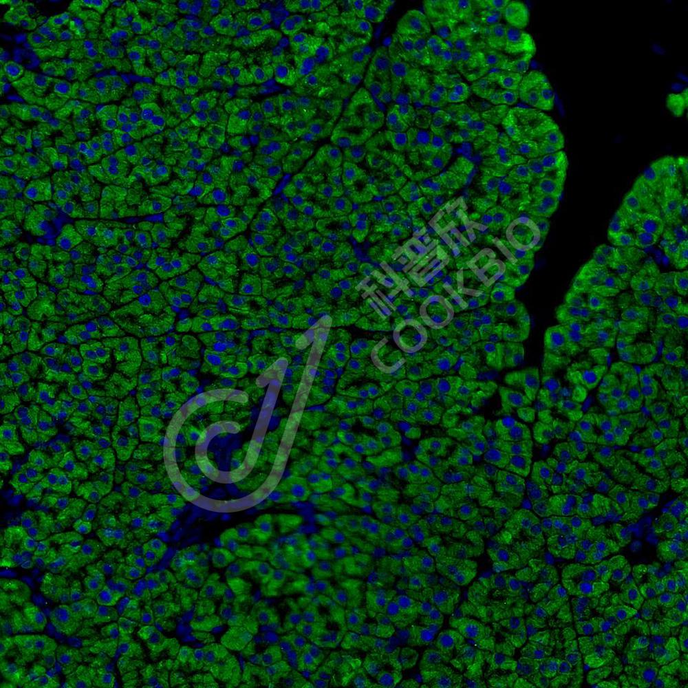 样品: 小鼠胰腺, 4%多聚甲醛 (货号KSG1101) 固定12-24小时.