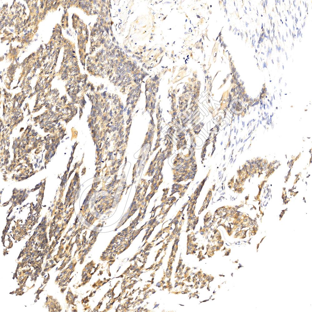 样品: 人食管癌, 4%多聚甲醛 (货号KSG1101) 固定12-24小时.